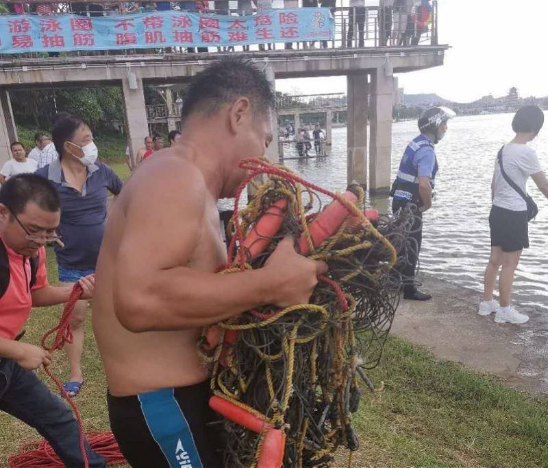 趙喜昌帶領(lǐng)救撈隊員趕到后,先后采用踏探搜尋和拉網(wǎng)式搜救進(jìn)行救撈。在拉網(wǎng)搜救,第二次下網(wǎng)后終將溺水男孩找到。由于溺水時(shí)間過(guò)長(cháng),經(jīng)醫護人員極力搶救已無(wú)力回天。